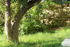 And then the next morning when I let the dogs out, I also liked the stiking interplay of light and shadow on the stone wall in our back yard.