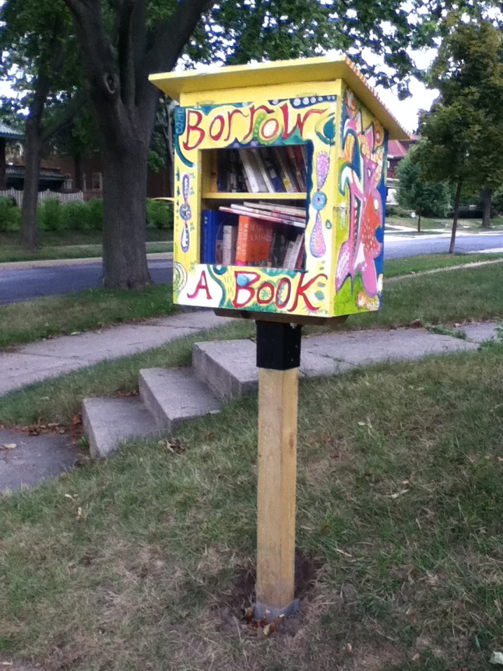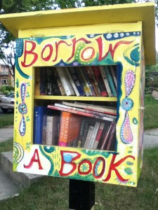 Boxes like birdhouses full of books are popping up in front yards around the metro Milwaukee area.  My own neighborhood has several.