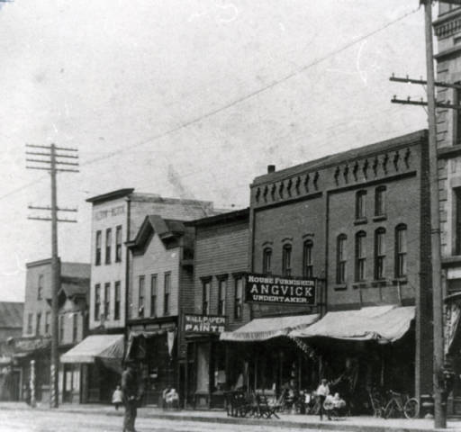 More locally, below is a photo from the Ashland (Wisconsin) Historical Society, from the online “Recollection Wisconsin” program sponsored by Wisconsin Library Services (and hosted by the Milwaukee Public Library). Check out the sign for “Angvick House Furnisher/Undertaker.”
