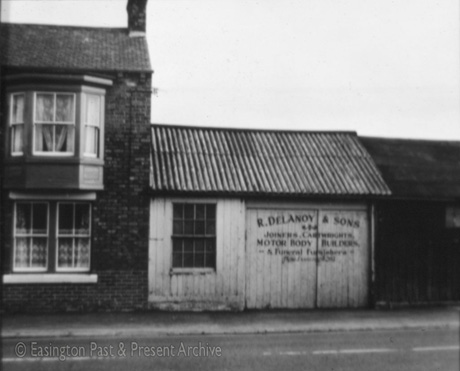 Apparently such multitasking also occurred in England, as seen in the photo below from the Durham County Council archives, taken in the 1930s in Easington Village. The sign on the door reads: R. Delanoy & Sons: Joiners, Cartwrights, Motor Body Builders & Funeral Furnishers.