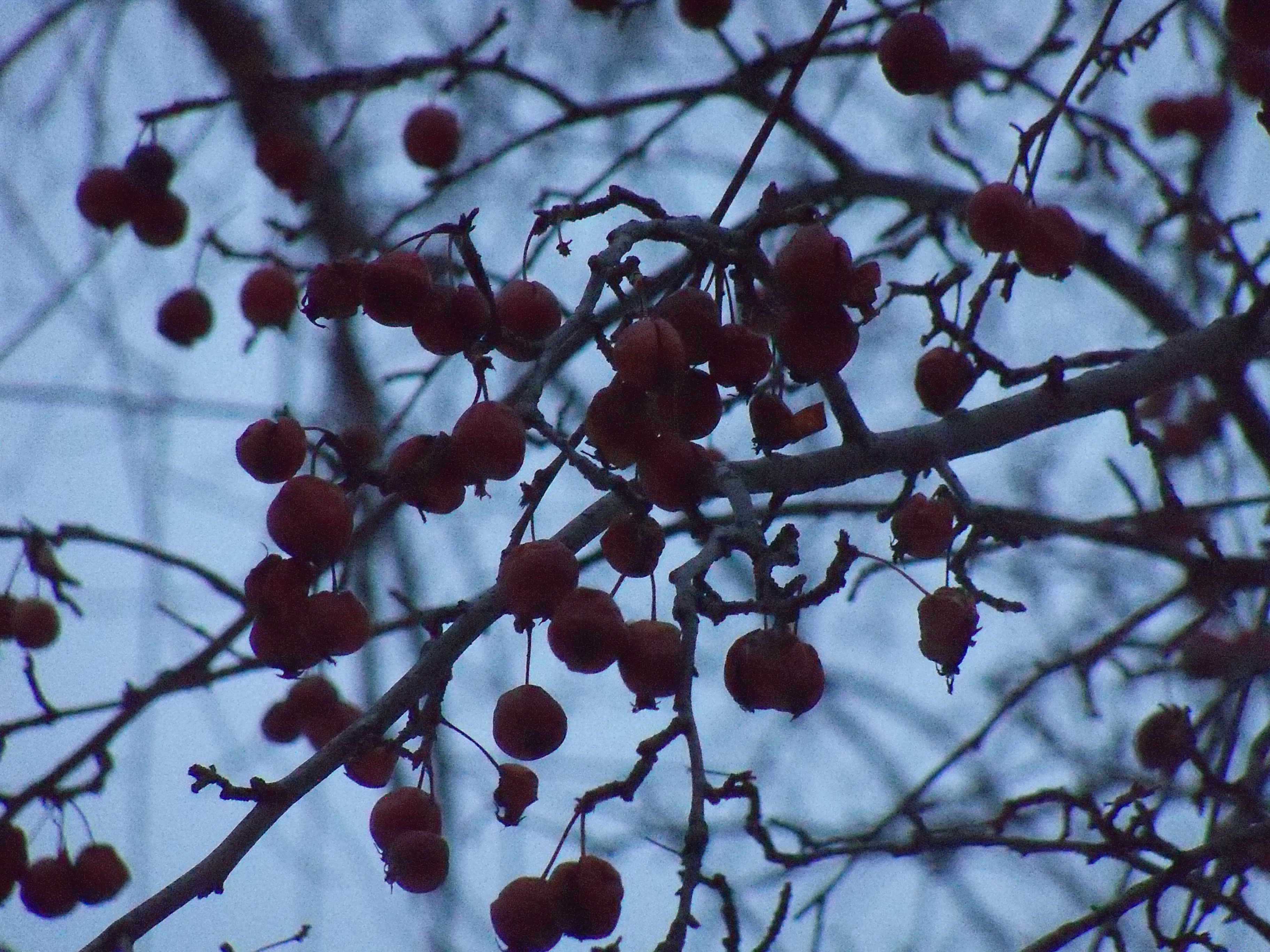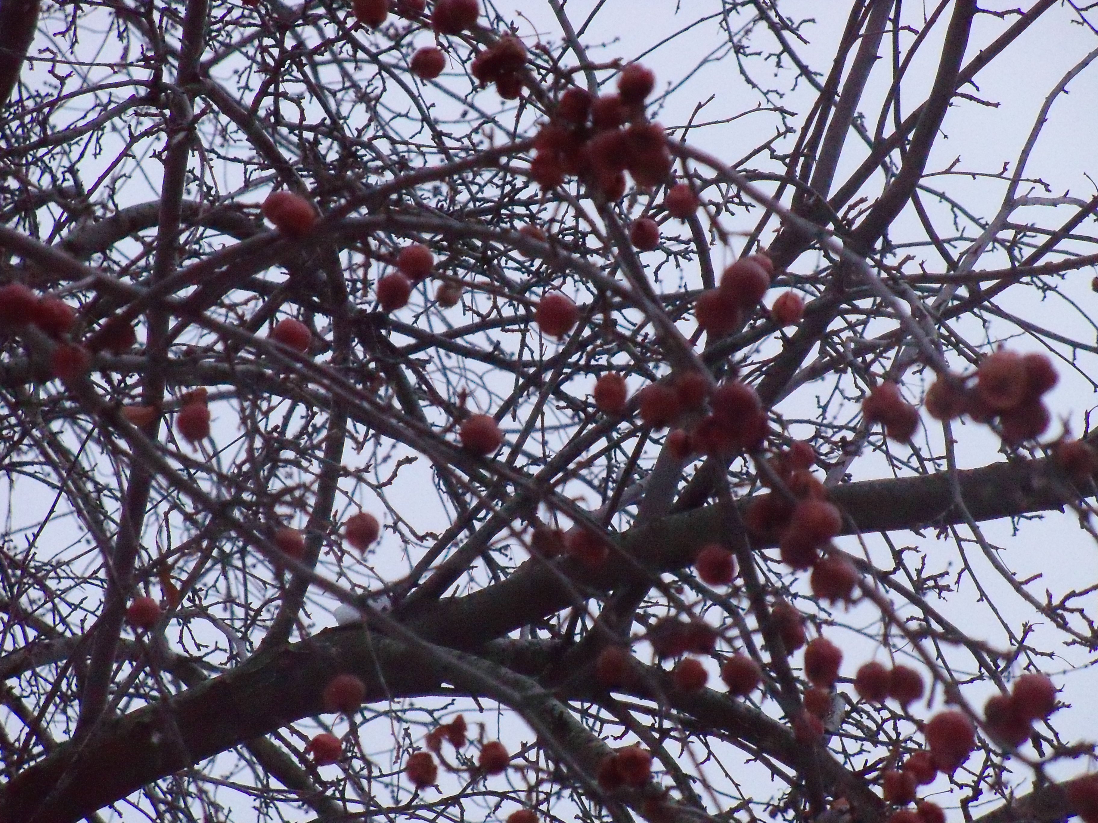 Remember when I wrote about our crab apple tree last September?  I guess I haven’t spent time in our yard since winter started (brrr!), but I was surprised to see these guys hanging on late yesterday afternoon.