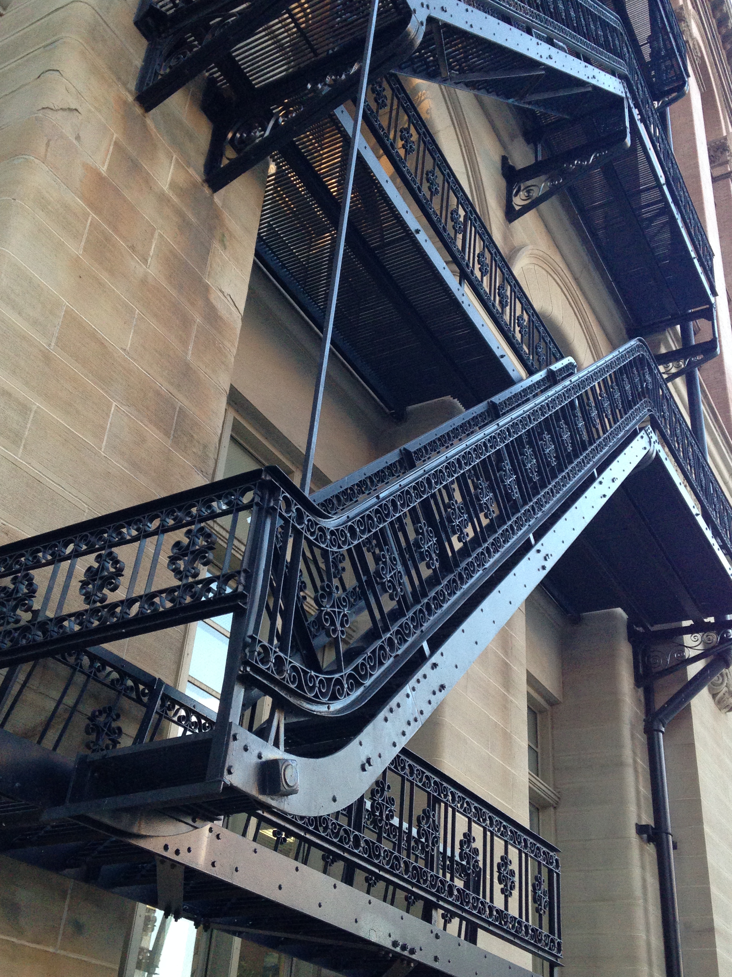 So yesterday, with the scaffolding gone, I noticed how attractive the actual fire escape is up close. It doesn’t even look like a fire escape. So ornate!