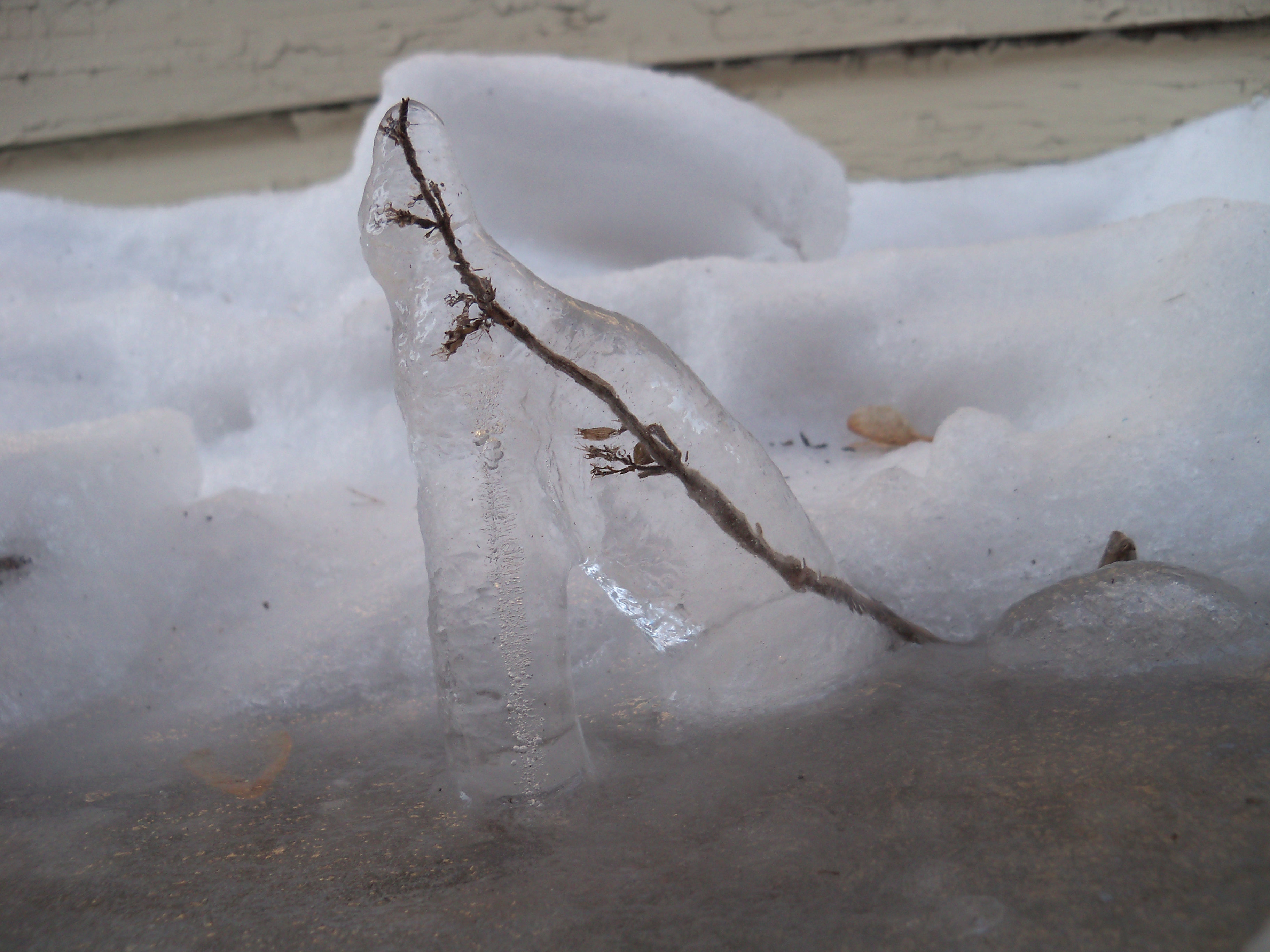 I also got a smile out of Milwaukee’s version of a fly in amber, below—a twig encased in ice.