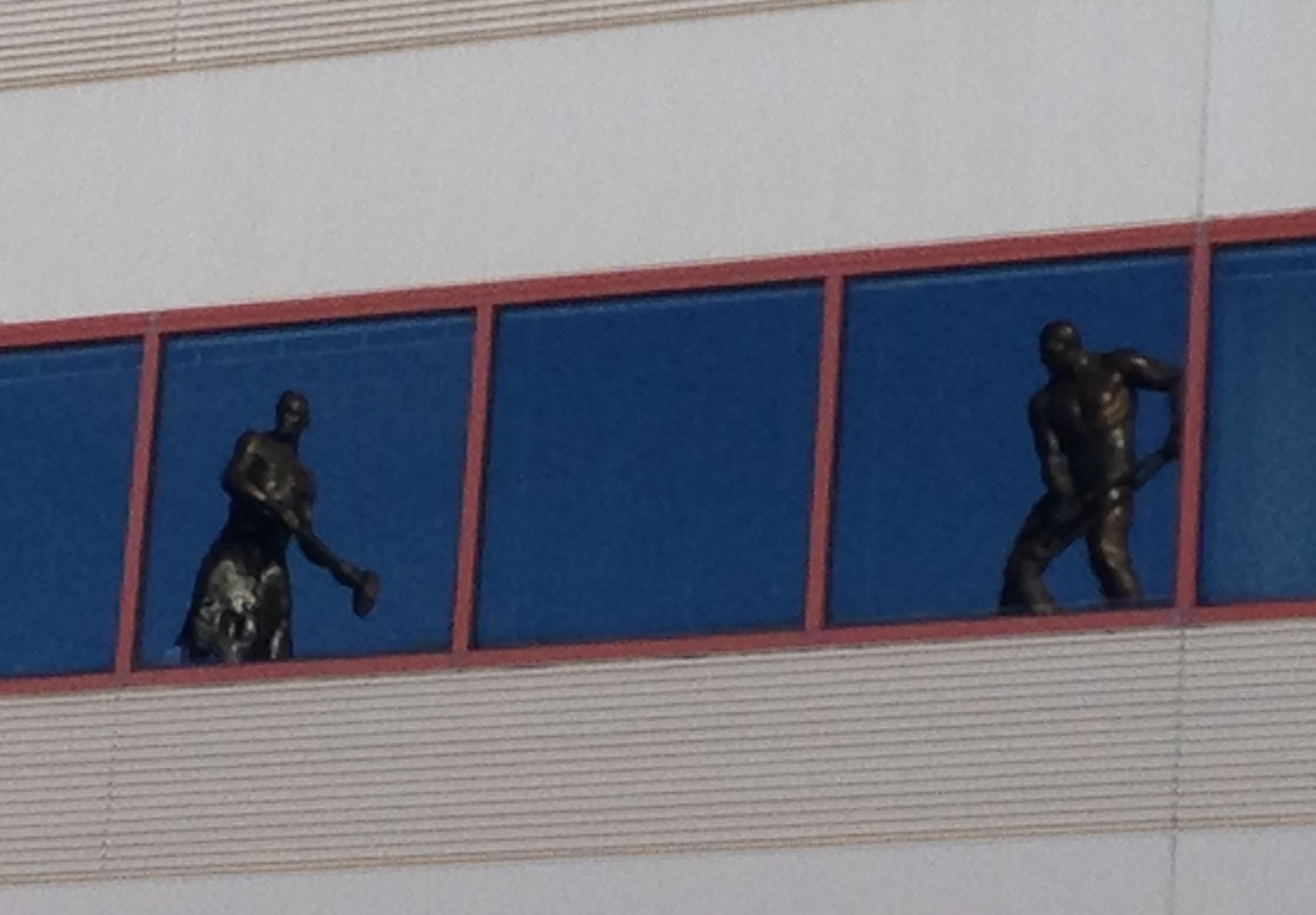Bronze statue atop Grohmann Museum, via Urban Milwaukee Dial, “One Piece at a Time: A Thousand Little Pieces,” by Judith Ann Moriarty, August 19, 2011 (http://urbanmilwaukeedial.com/2011/08/19/one-piece-at-a-time-a-thousand-little-pieces/)