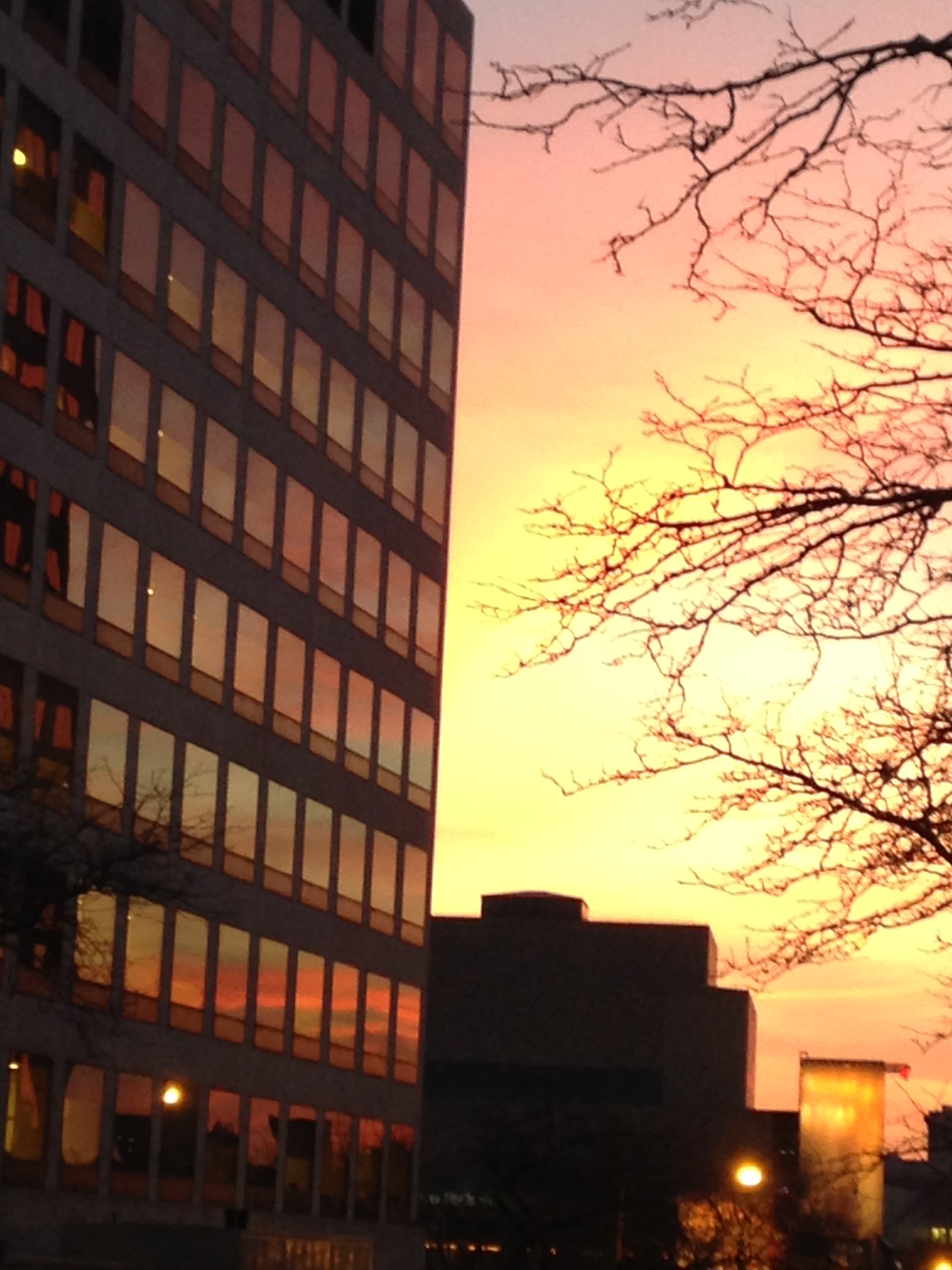 Taken with my iPhone as I returned to my office last night after teaching an early evening class. (Despite the fact that downtown Milwaukee is built on a swamp and thus wages a constant battle against sinking, this building isn’t really tilted! It’s just a weird thing that my iPhone does with perspective 🙂 )