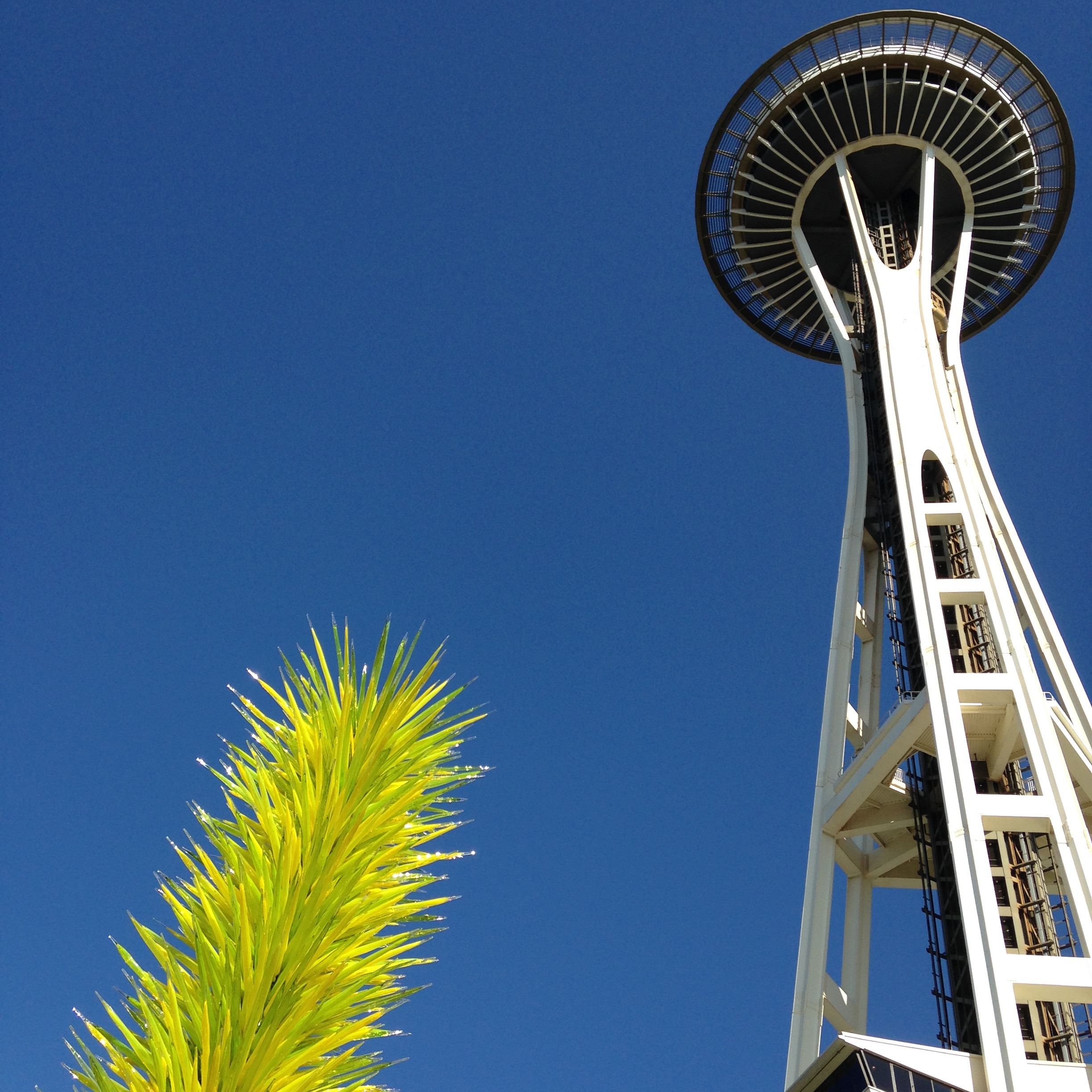 The Space Needle is located in the Seattle Center, a 74-acre park that served as the grounds for the World’s Fair. Once we arrived there, we decided to forego a trip up inside the Space Needle in favor of two other things we decided were higher priorities.