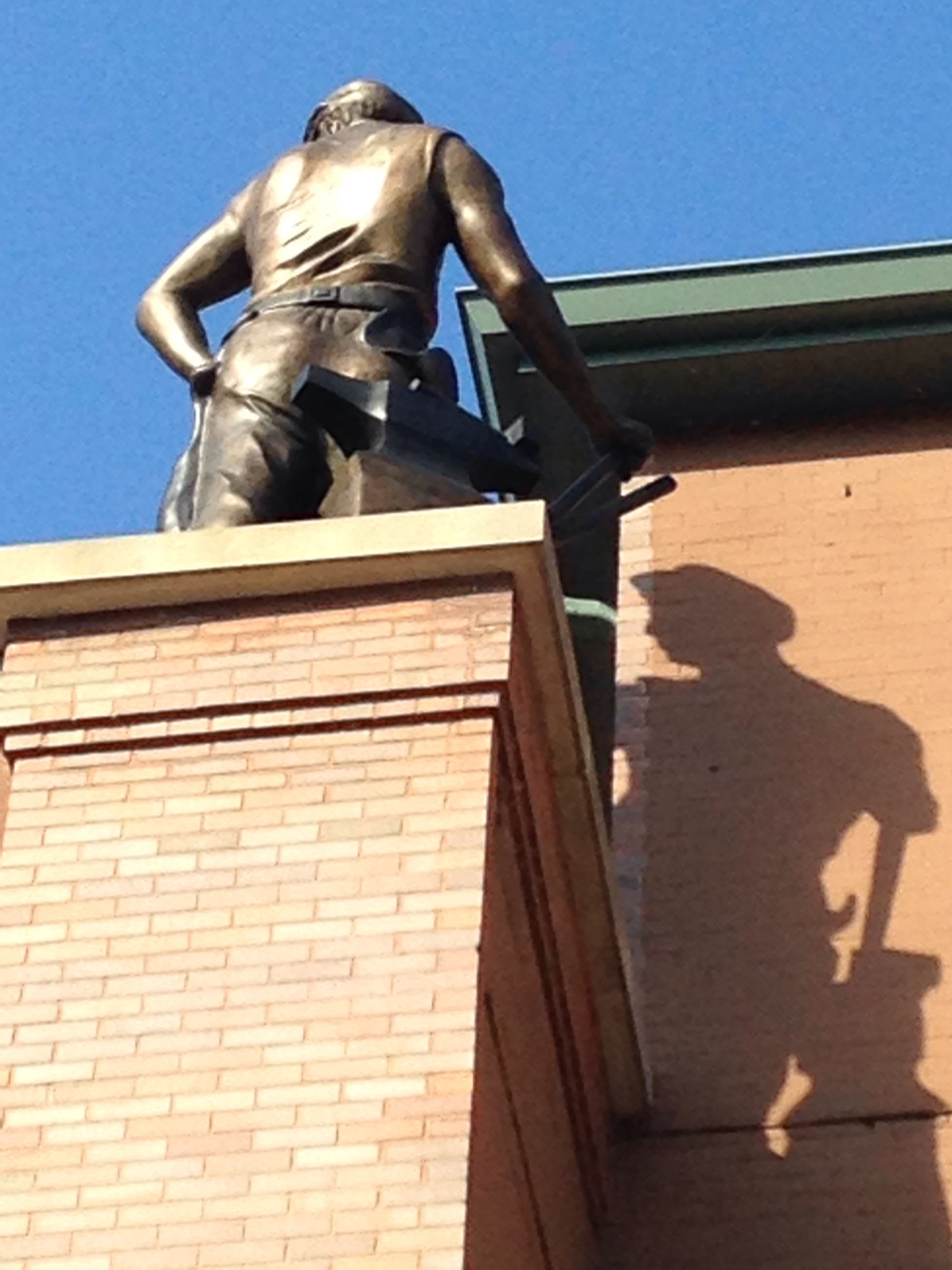 We had to go outside for a fire drill two days ago at work, and while waiting for the emergency coordinator to come and tell us it was clear to go back into the building, I looked up and noticed how well defined and interestingly placed the shadow cast by this giant bronze statue on the roof was. Good thing I had my phone 😄
