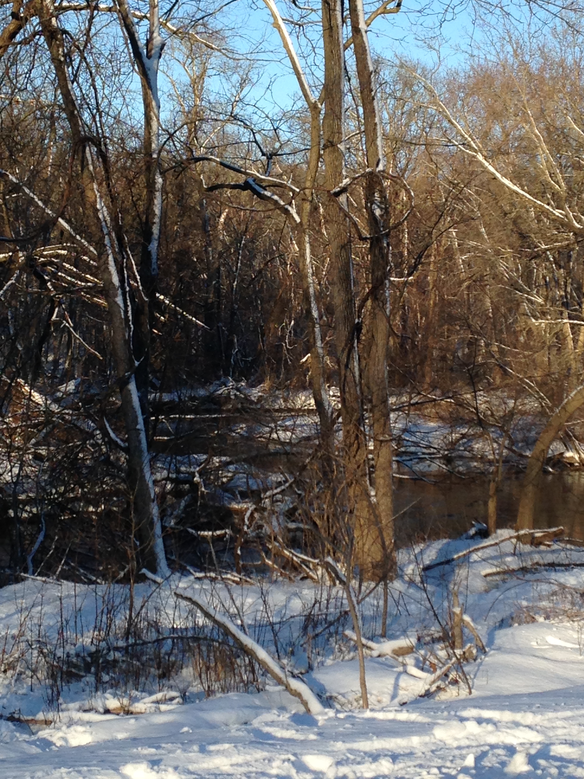 I had an appointment that took me along the Menomonee River Parkway early this morning, and as the sight of morning winter sunlight on the snow beside the river is one rarely glimpsed in the normal course of my daily and weekly routine, I made a quick stop to take a few photos.