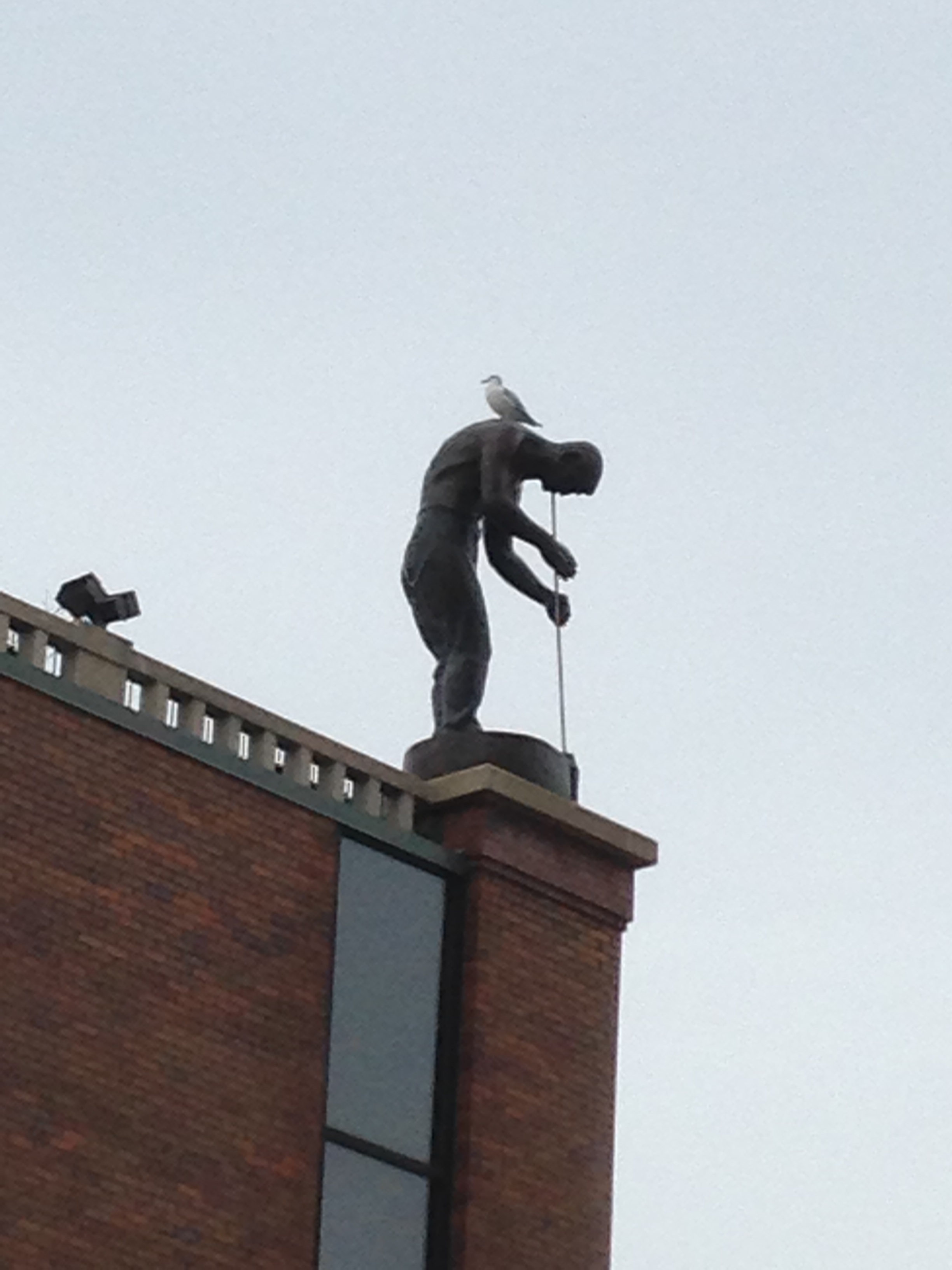 I’ve heard of having an albatross around one’s neck while one works, but never a seagull on one’s shoulder.