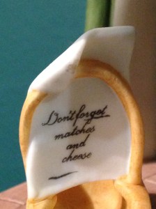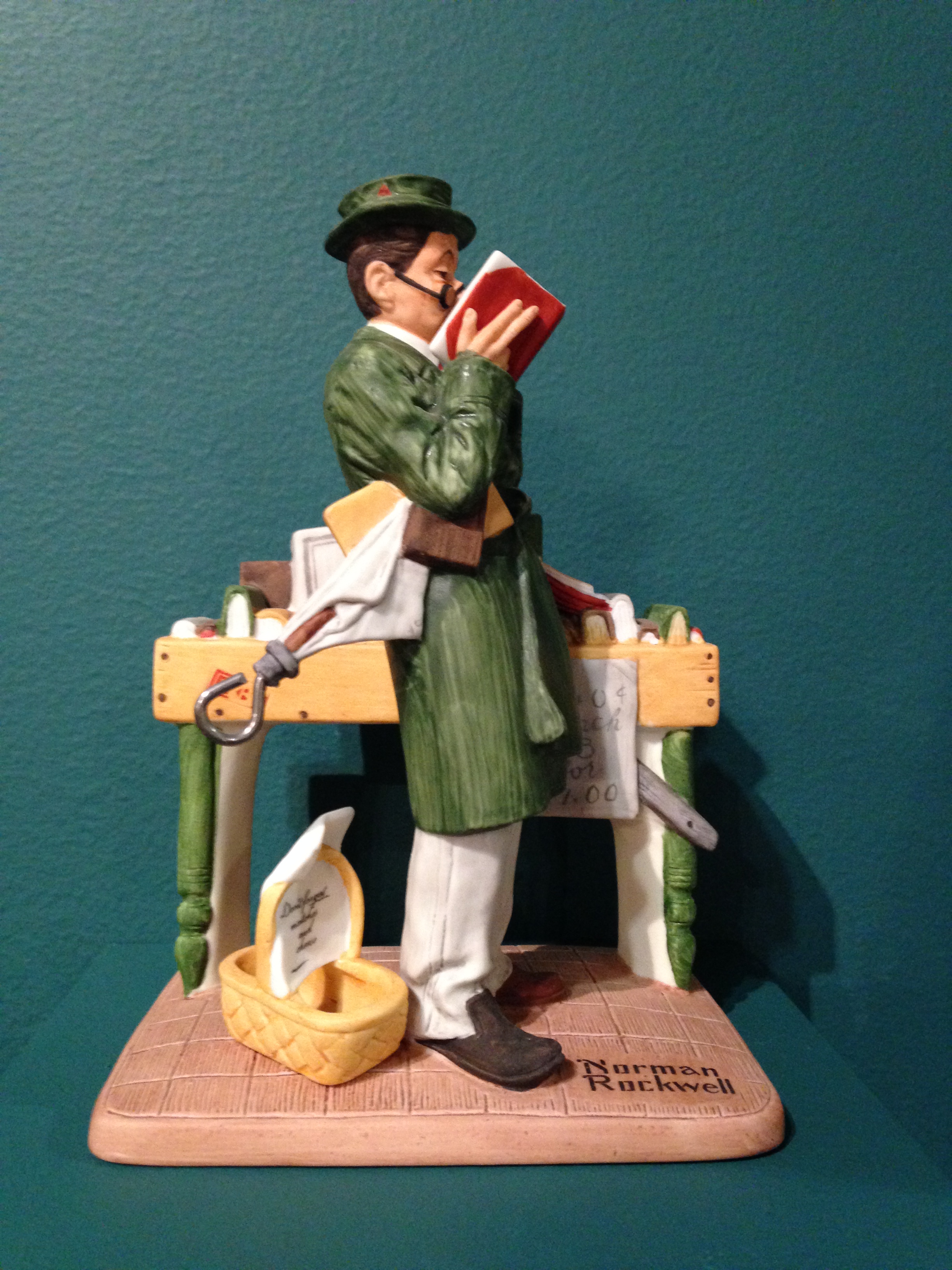 “The Bookworm,” Danbury Mint replica figurineToo adorable! It reproduces every detail, right down to the basket at his feet with the note from the painting: “Don’t forget matches and cheese.”
