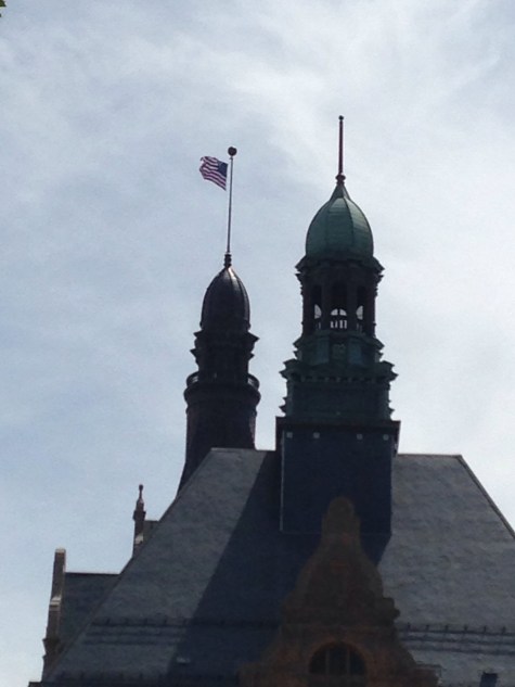 And the real thing – viewed by pivoting 180 degrees to look due south across the park. Note the flag waving in the opposite direction, sort of a “mirror image” in reverse 🙂