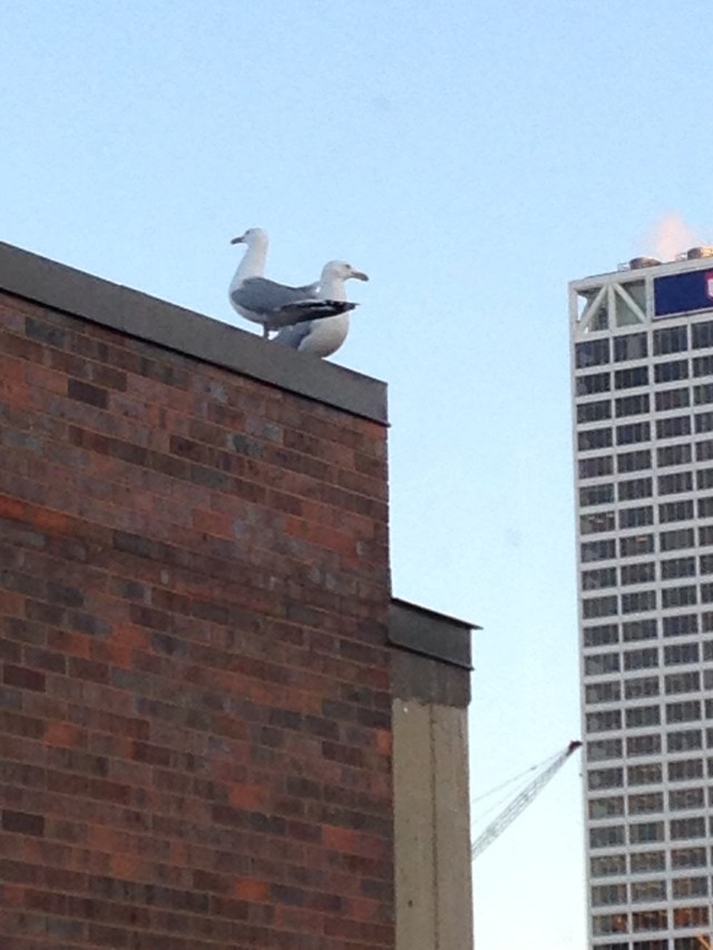 It should be in the post itself (on my page) if it’s nit in your WP Reader. I wrote this up on my phone, and I always save the photo for the last thing I add because for some reason it always screws things up if I do it first on my phone. But this time it was so late in the evening and I was so tired that I forgot to add the picture! And then immediately had to edit and republish. Sigh. It’s the photo of the two gulls sitting on top of the Walter Schroeder Library, with the First Wisconsin FIRSTAR US Bank in the background.