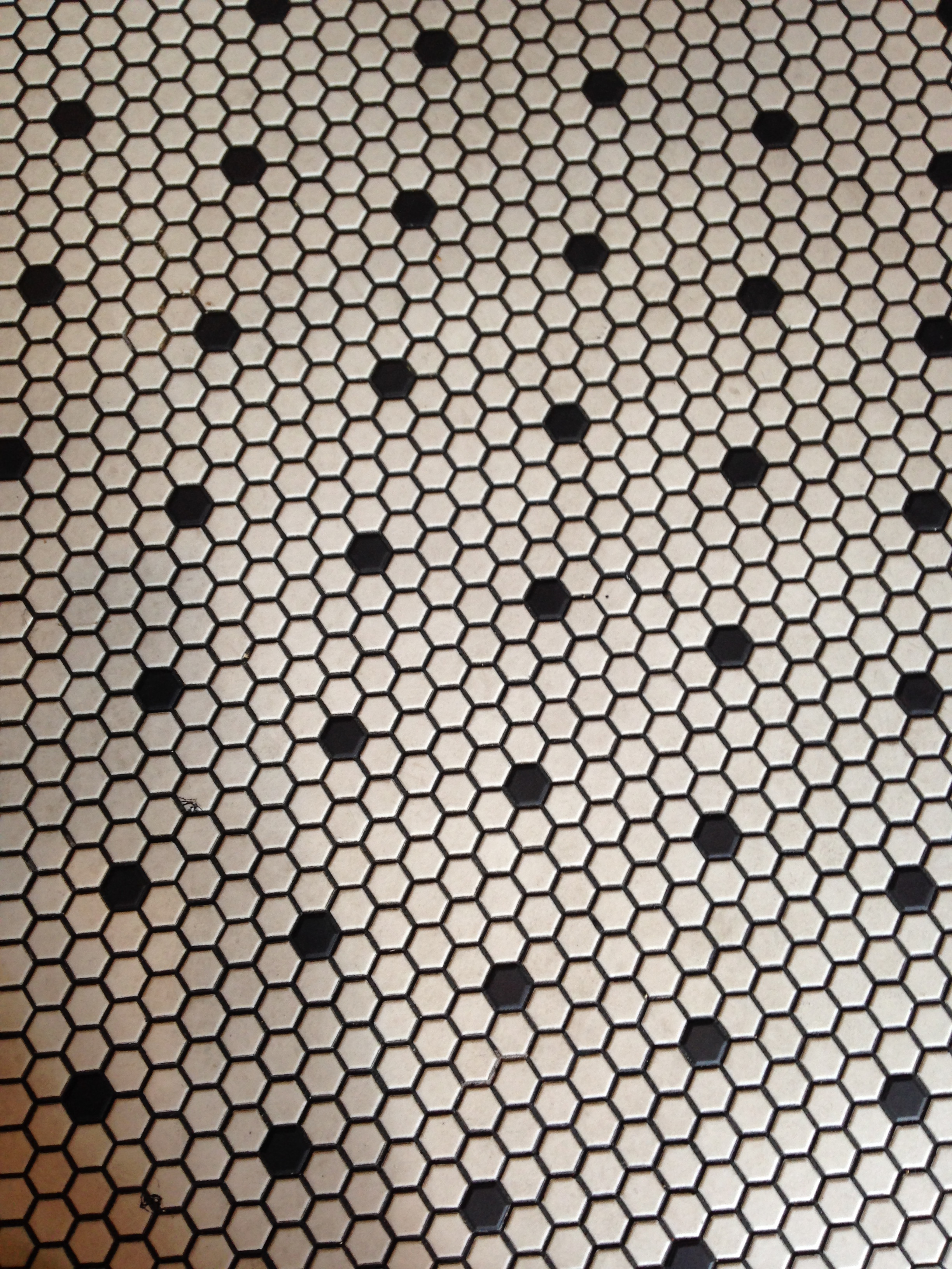 The tile floor at Ma Fischer’s, which is your basic, standard bathroom floor in every house in Milwaukee built before, say, World War II.