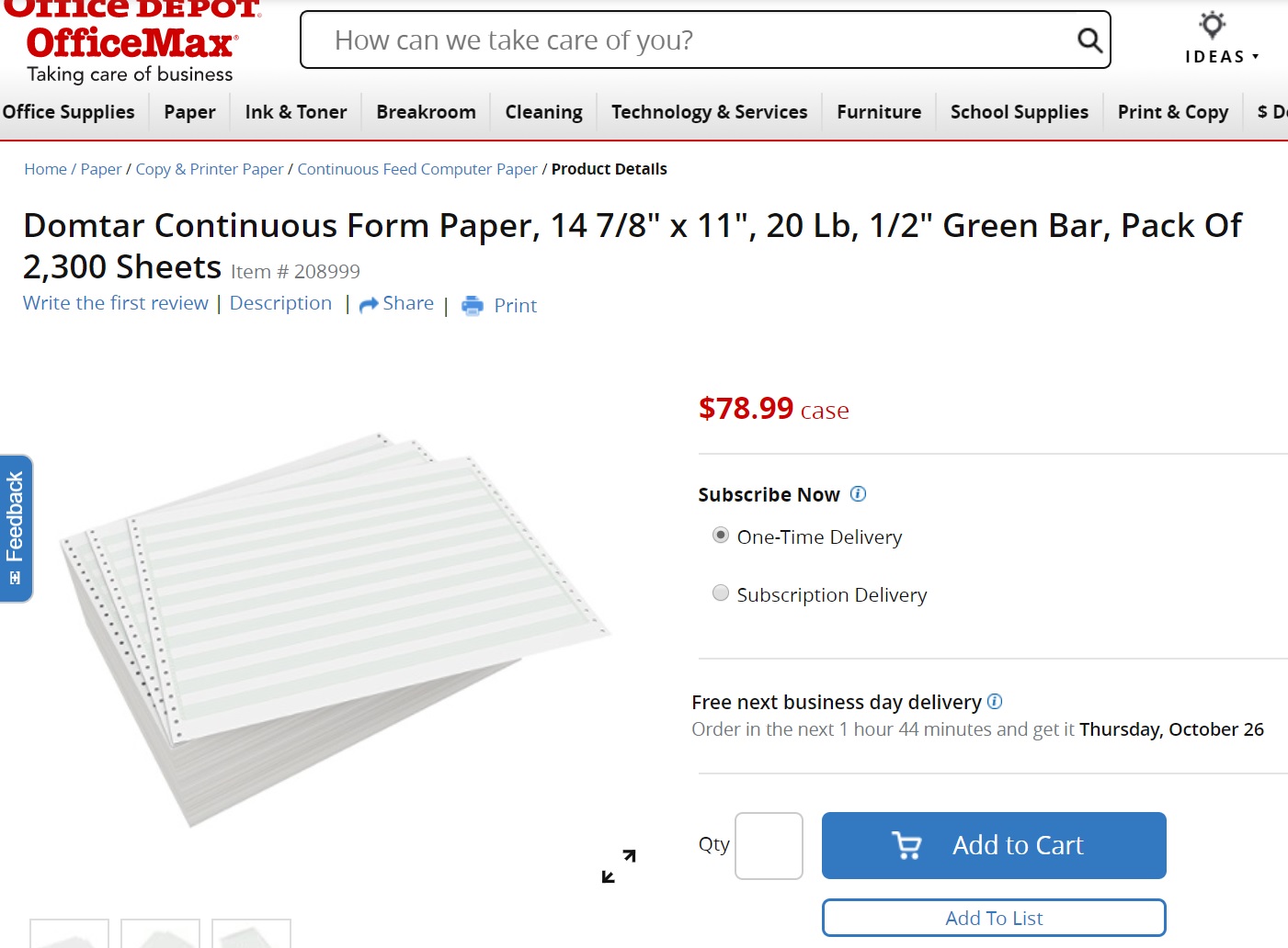 Amazingly, look at who still sells that striped green continuous-feed paper!