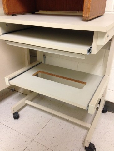 I wonder if anyone still uses this printer cart for anything other than a lectern stand, which appears to be its current job. At least it is serving a legitimate need in its repurposed life 🙂