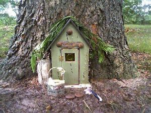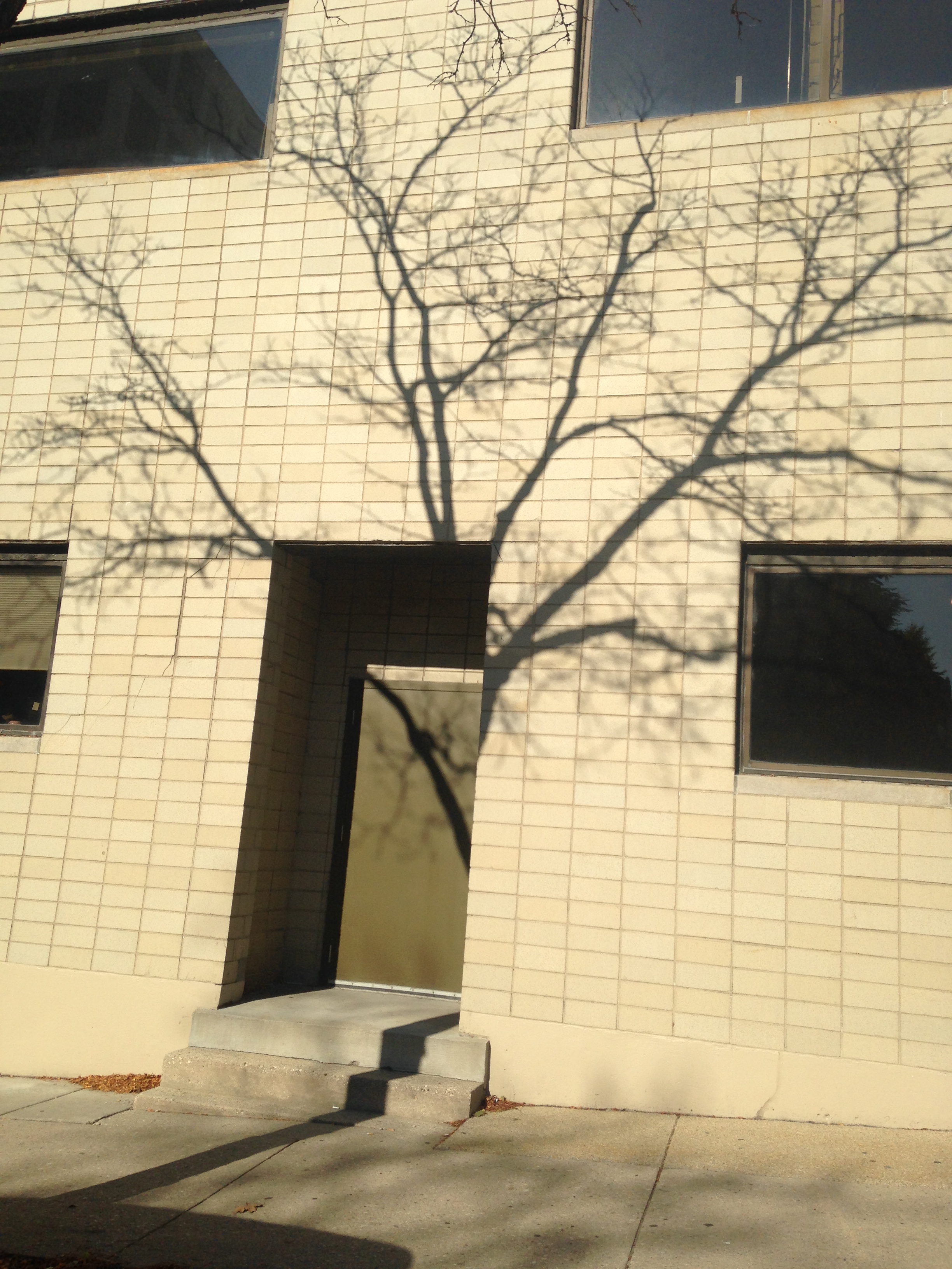 I like how the tree seems to be growing out of the doorway and spreading up the wall. I’ve seen whimsical fairy/gnome doorways in trees before . . .