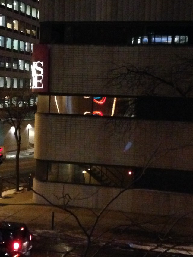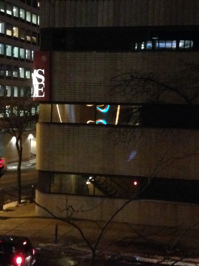 As reflected in the second-floor window of the MSOE Campus Center across the street from my office around 5:45 last night π