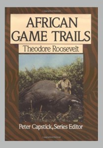 Did you catch the author’s name? Theodore Roosevelt? In March 1909, shortly after leaving the Presidency, Roosevelt made an extended visit to Africa to “collect specimens” (I’m not sure what kind, although as you can see from the book’s cover, he also shot at least one elephant) for the Smithsonian.