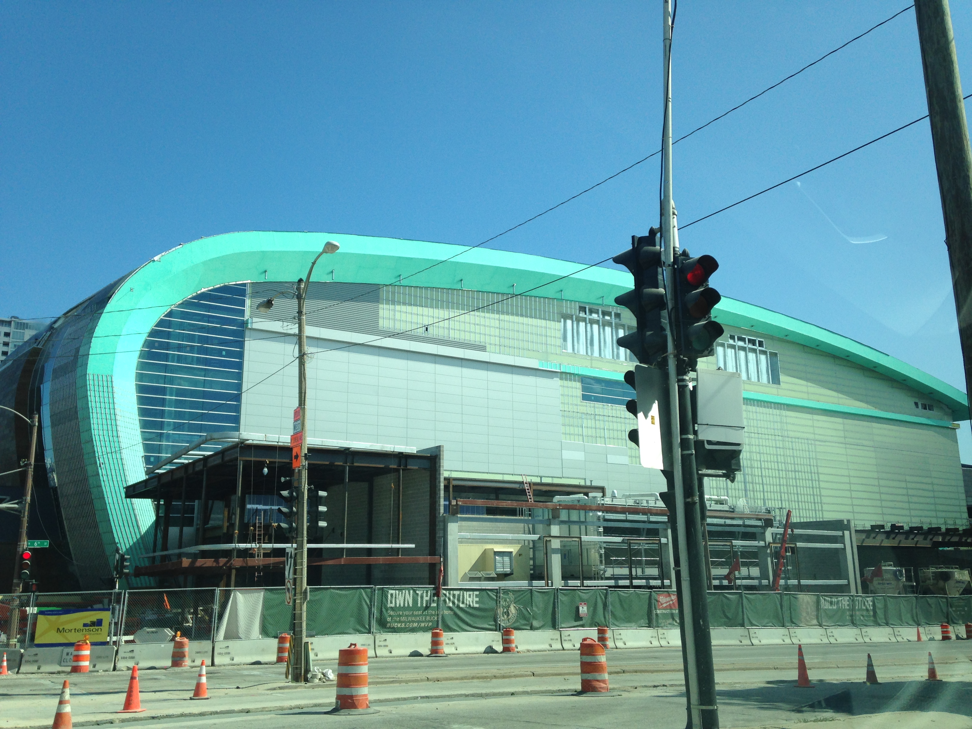 Progress on the new Milwaukee Bucks arena (official name: Wisconsin Entertainment and Sports Center, or WESC, Wikipedia article here) has been slow but steady. Here’s what appears to be an entrance to the complex at the corner of Juneau Avenue and 6th Street.