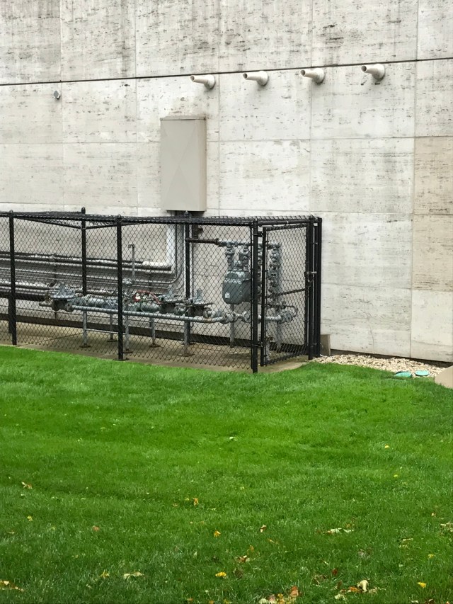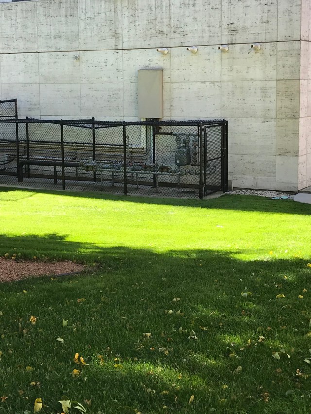 Without the contrast provided by hard light and deep, well-defined shadows (as in the first photo), you don’t particularly notice some features at all (the pipe things sticking out from the wall), while other features (the grass, the cage) become flat and uninteresting.