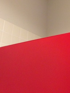 I couldn’t believe it this past Fri when I visited the ladie’s room at the MOWA. Yup, I was re-living your color blocking blog. I wonder if it was the same painter/designer for public lavatories? I was trying to recall if it was the same red as your photo and decided it had abit of orange to this red hue than your photo. The white tile was 4 mini squares to your large tile.