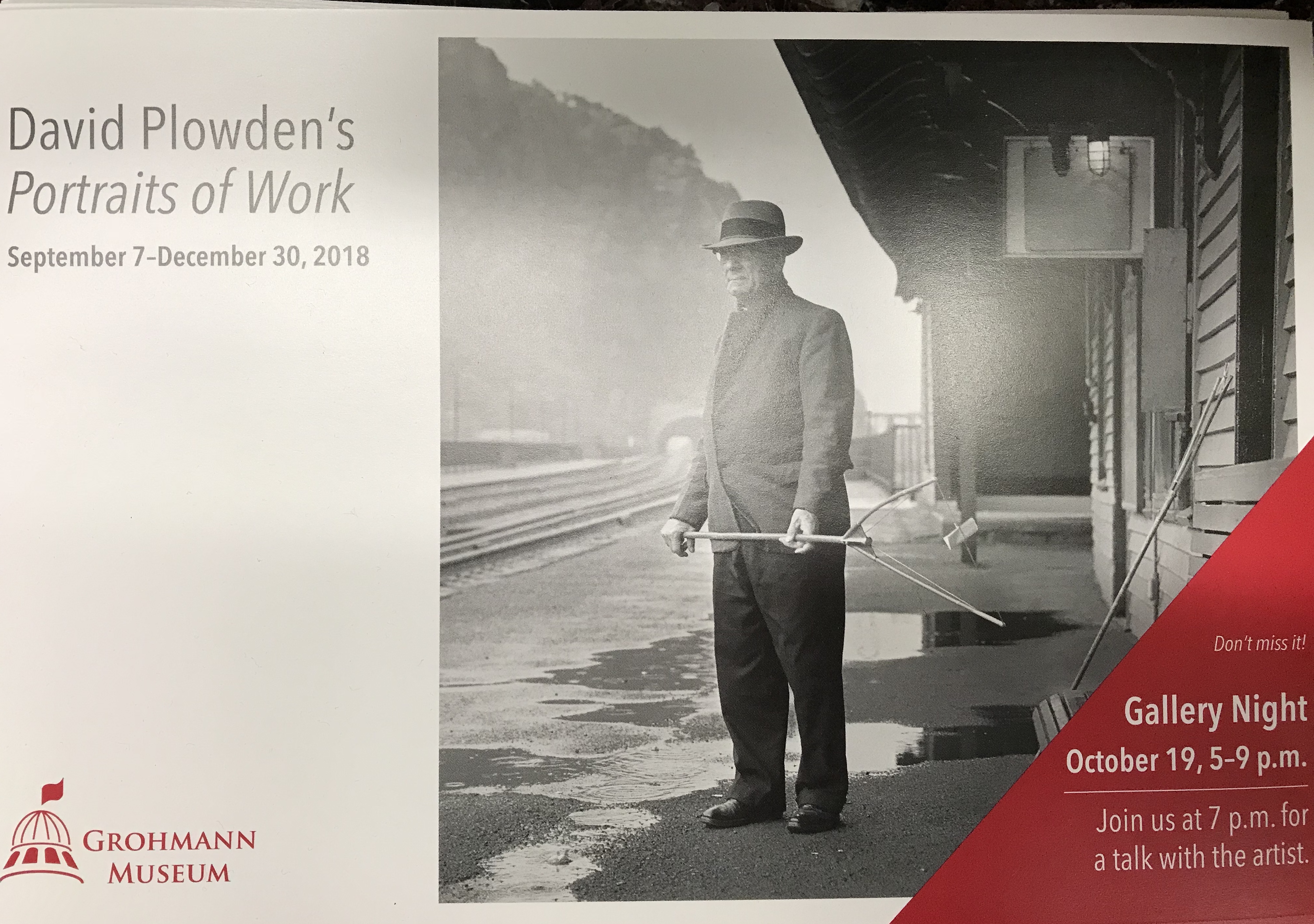 Oh hey, look at what I just noticed on the card advertising the Grohmann Museum’s current special exhibit!