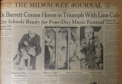 First, a little background. Simba (called “Sim” by the Museum/Library staff) was an orphaned cub purchased in Africa by a group of Public Museum staff on a specimen-collecting “safari” in 1929. “Simba” is the Swahili word for “lion.”