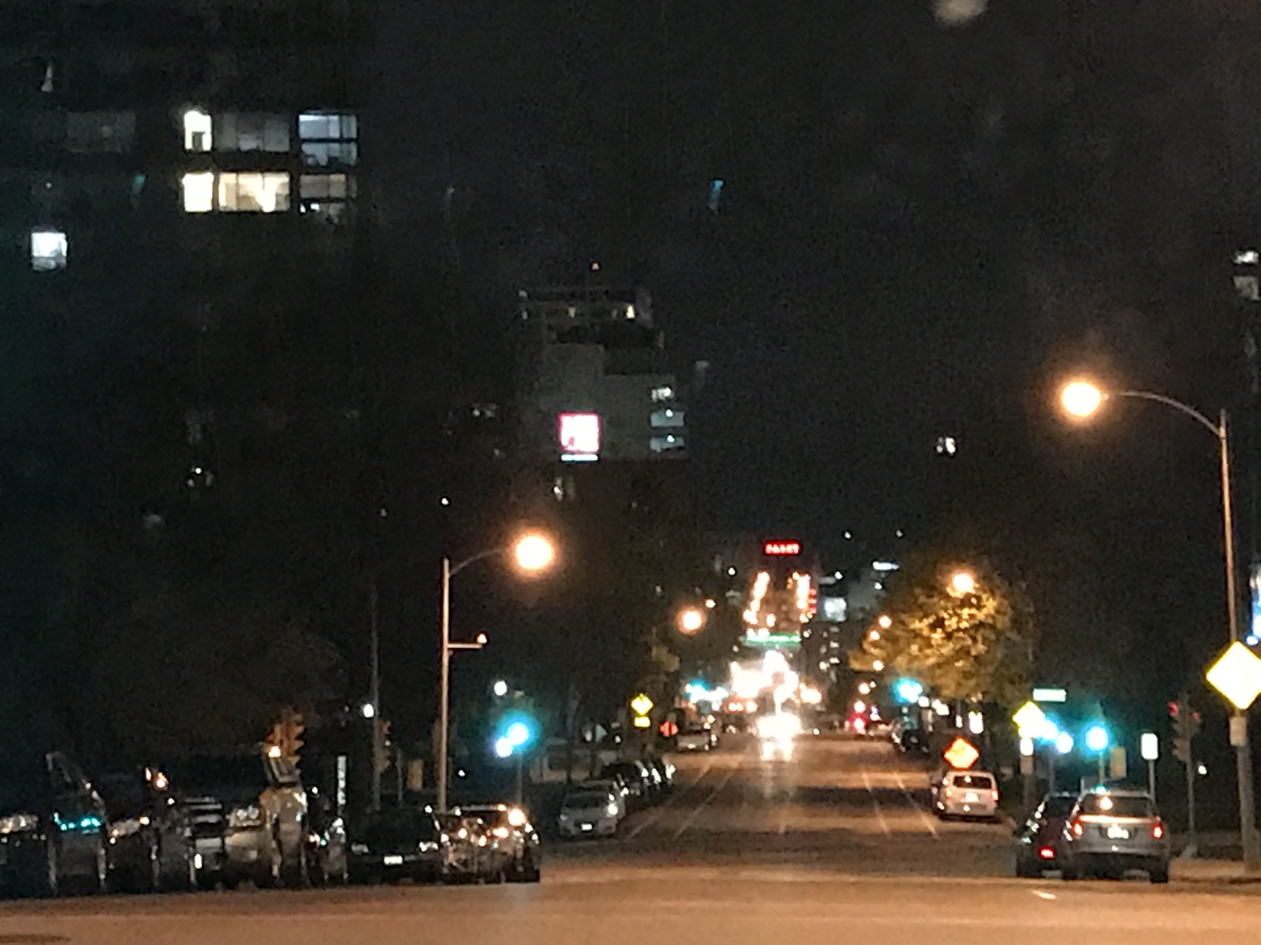 The horizontal strip of glowing green light crossing Juneau in the distance is the skywalk connecting the parking garage to Fiserv Forum, the Milwaukee Bucks’ new arena. The red neon strip beyond that is the old Pabst Brewery sign, also stretching across Juneau at the western edge of downtown Milwaukee. Just immediately beyond the “Deer District,” which is what they’re calling the area around the new arena now, the old Pabst brewing complex has been renovated and repurposed as apartment buildings, hotels, restaurants, bars, and UW-Milwaukee’s School of Public Health campus.