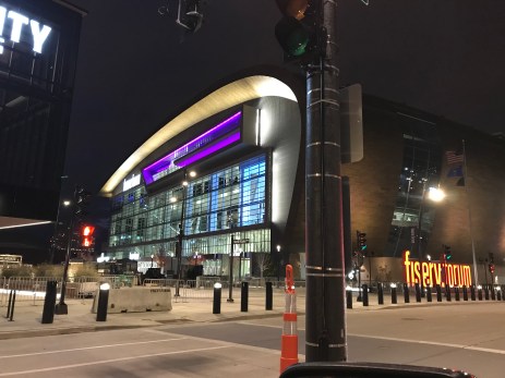 A few minutes later I stopped at a red light on Juneau immediately north of Fiserv Forum. Again, the darkness changed how things presented themselves to me.