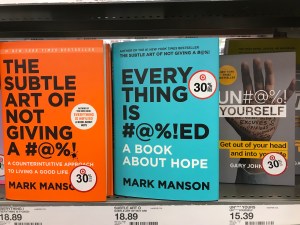When doing the reading and signing at my book launch I had the backdrop of shelved books in Read Between the Lynes Bookstore in Woodstock, IL. Unbeknownst to me behind me was a book shelved with its face pointed out into the room “Everything is F**ked: A Book about Hope.” People were taken pictures, we had the video camera going, 25 or so people sat looking at me from the chairs, all taking in this (how did you put it) “high strung” book 3 feet behind me. As soon as I was done the members of my authors group came up and said, “We want you to come stand up by the bookshelf behind you for a picture.” I did and got a big bang out of the book and it’s proximity to my presentation. God is in the details.