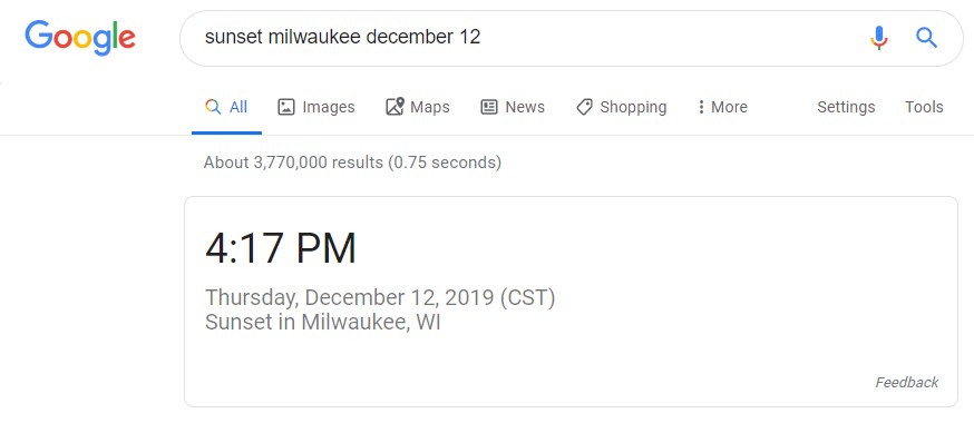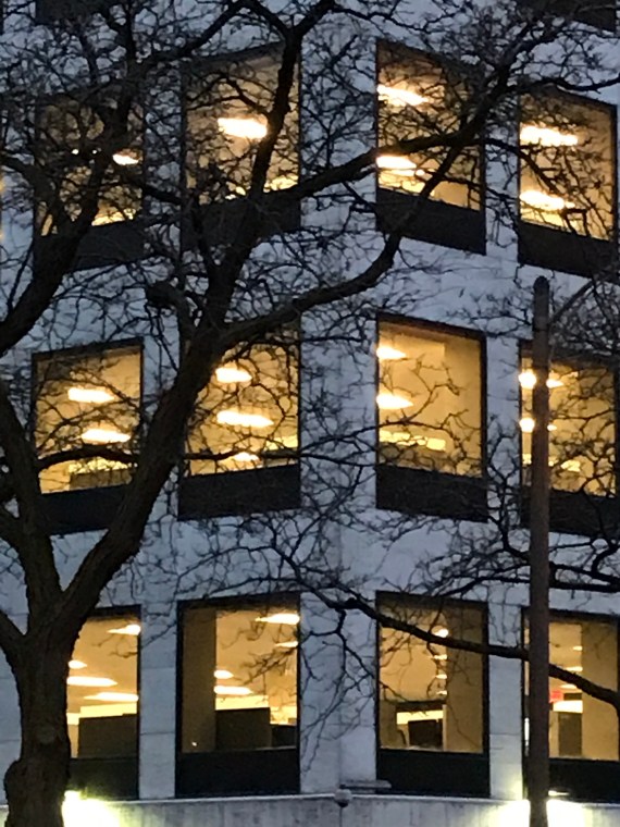 We’re getting to that time of year when darkness falls in Milwaukee well before it’s time to leave work for the day. I took this photo yesterday at 4:17 pm.