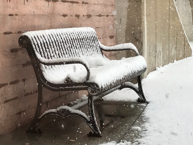 Just a photo I took of a bench outside the Starbucks at Red Arrow Park. Winter can be pretty and even peaceful.