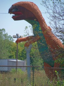Today I stumbled upon two nice update articles in OnMilwaukee and the Milwaukee Journal Sentinel that detail where the enormous reptile’s restoration currently stands. Or make that where it currently “lies,” because, as both articles’ photos and the OnMilwaukee video show, this forlorn guy is “resting in pieces” (couldn’t resist the obvious pun) in a field awaiting his eventual resurrection.