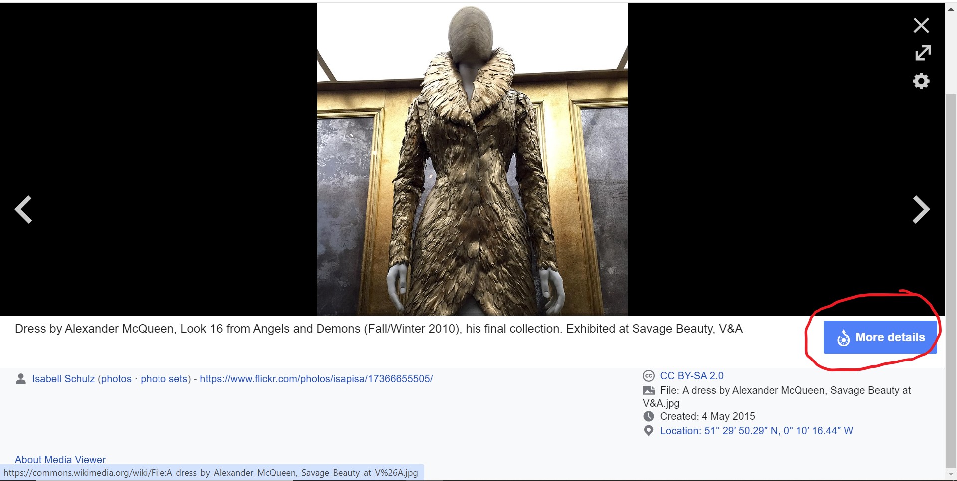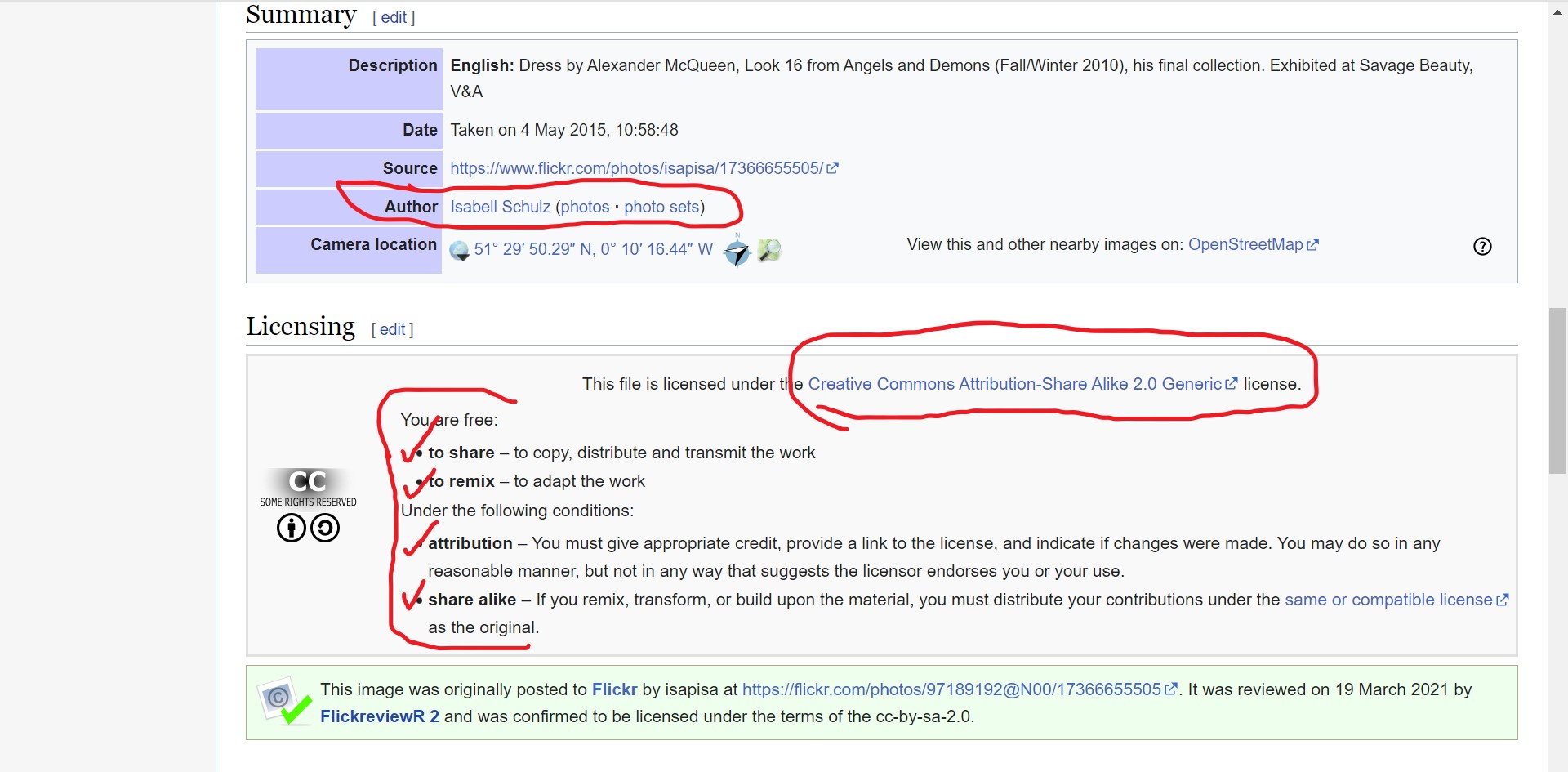 With Wikimedia Commons and Wikipedia, I also like to click on the “More details” button below the image I want to use.