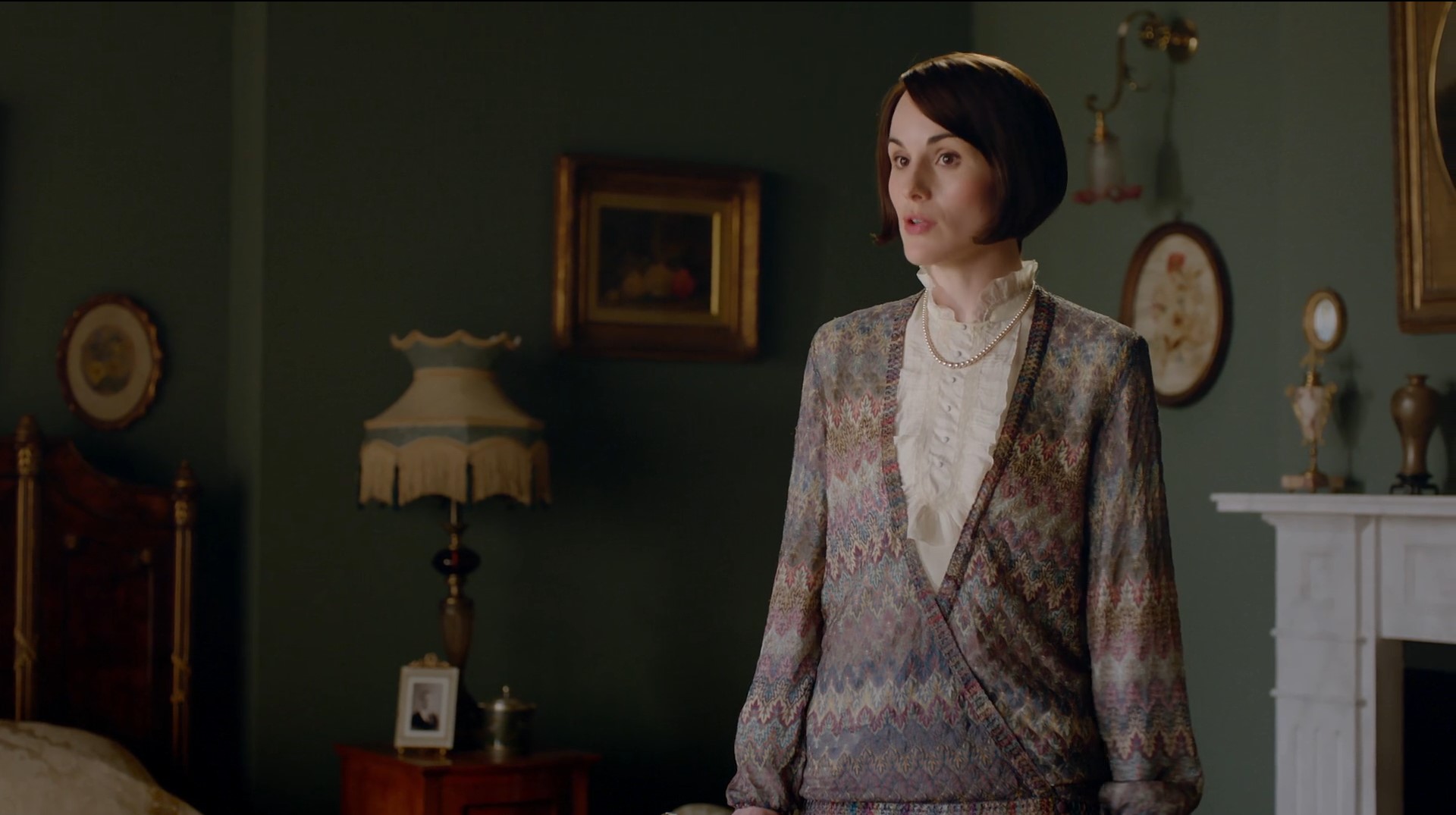 And then, not long after, it turned up again in that same Downton Abbey season, set in the year 1925, in a sweater worn by the oh-so-elegant Lady Mary Crawley (both images below from Season 6, Episode 8).