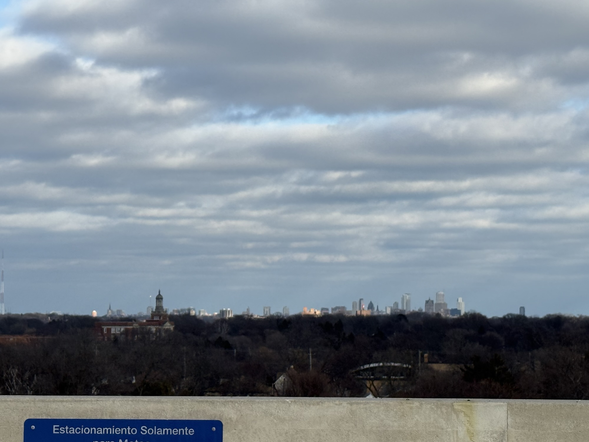 It was fun seeing the sights from this unusual perspective. Although I groaned with each level I was forced to ascend in the parking structure (busy day at Froedtert, I guess), it was a real treat in the end that my far-flung, last available parking space on the roof turned out to be the best seat in the house!