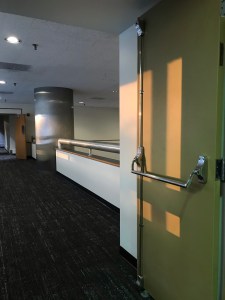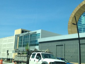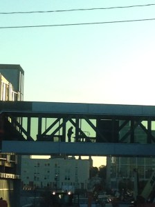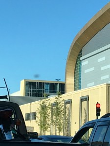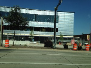 Here is Fiserv Forum’s skywalk, taken on my way home from work in August 2019. I was stopped at the traffic light on Juneau in a spot farther back than usual, and it just struck me that I’d never seen the skywalk from exactly this perspective.