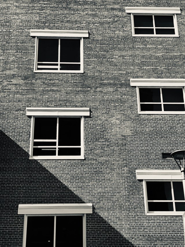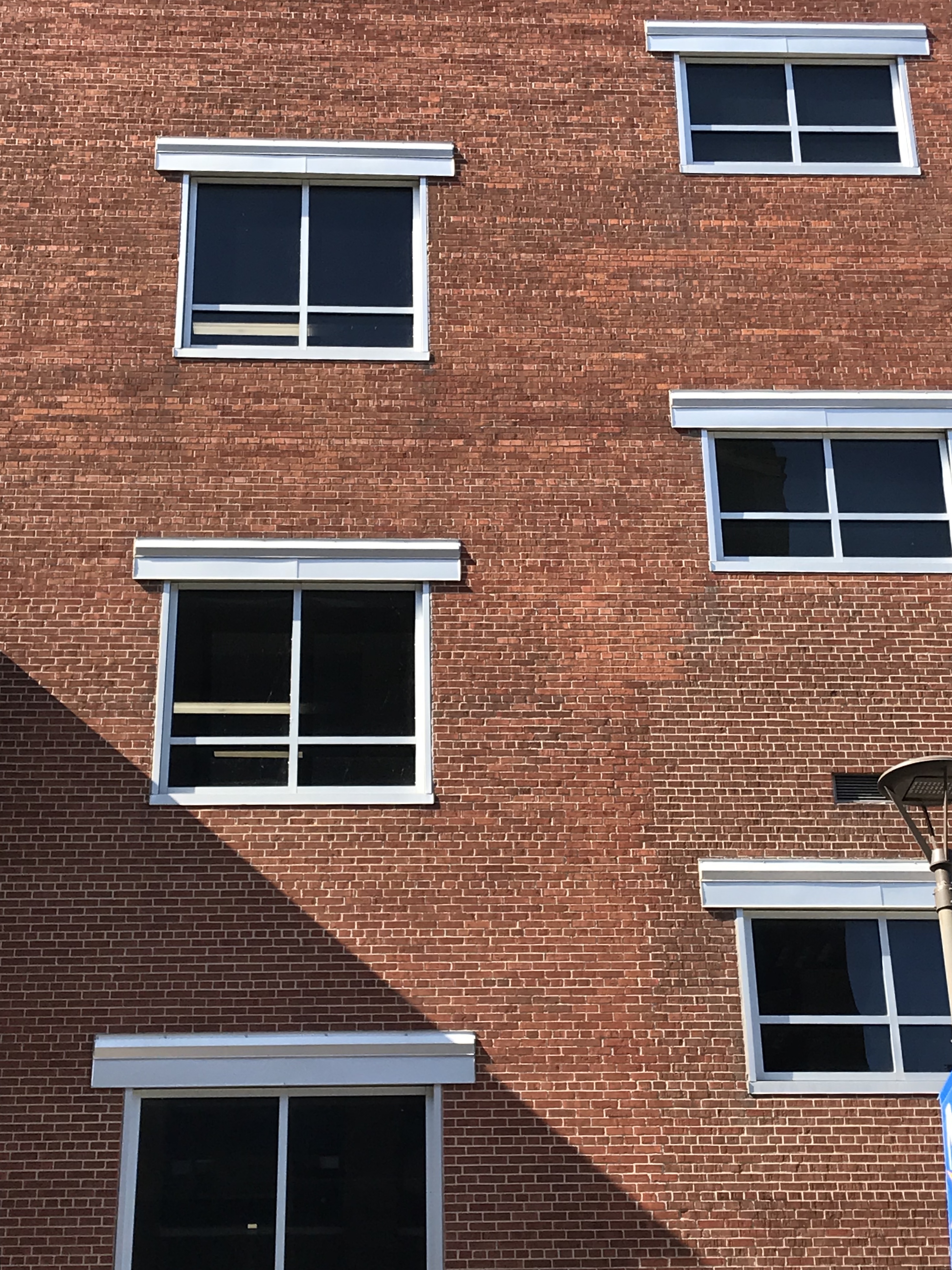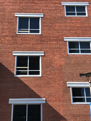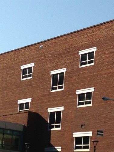 This wall of windows at Milwaukee Area Technical College has caught my eye for a long time. Not sure why, but the starkness of the pattern appeals to me.